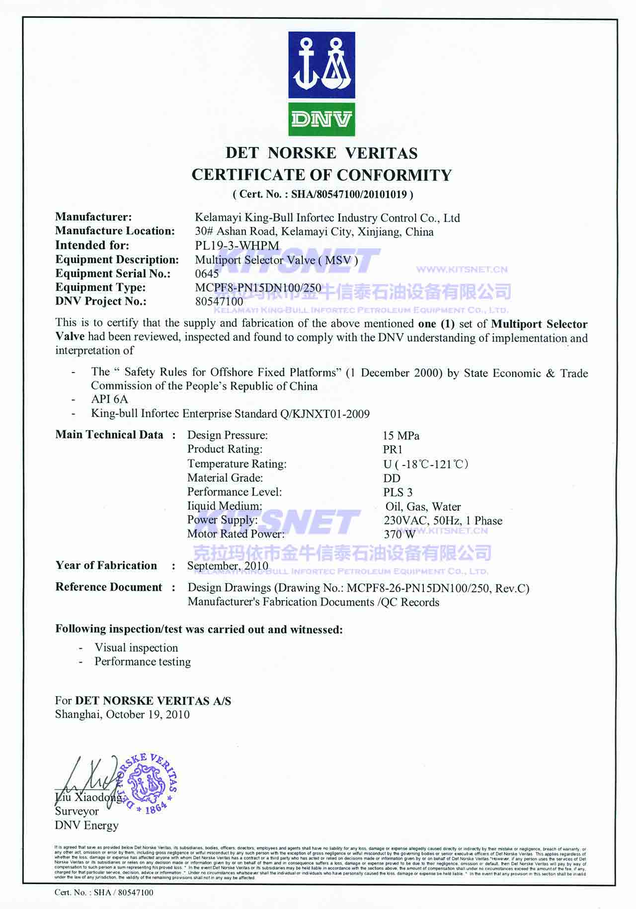 多路閥DNV產(chǎn)品證書